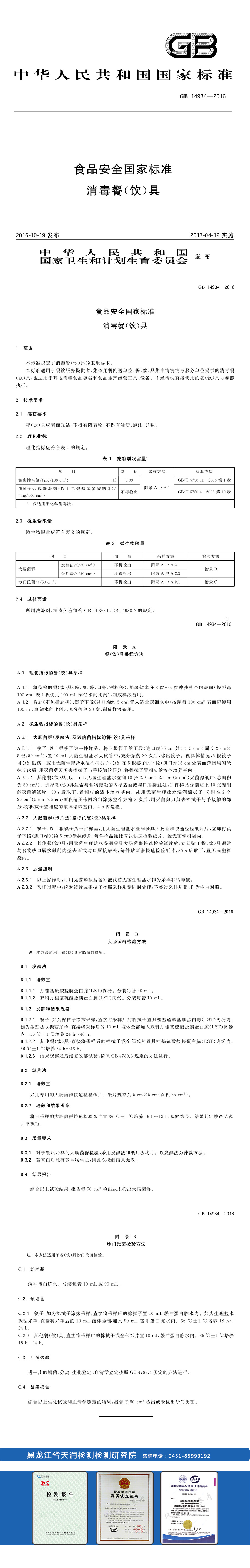 消毒餐(饮)具检测标准